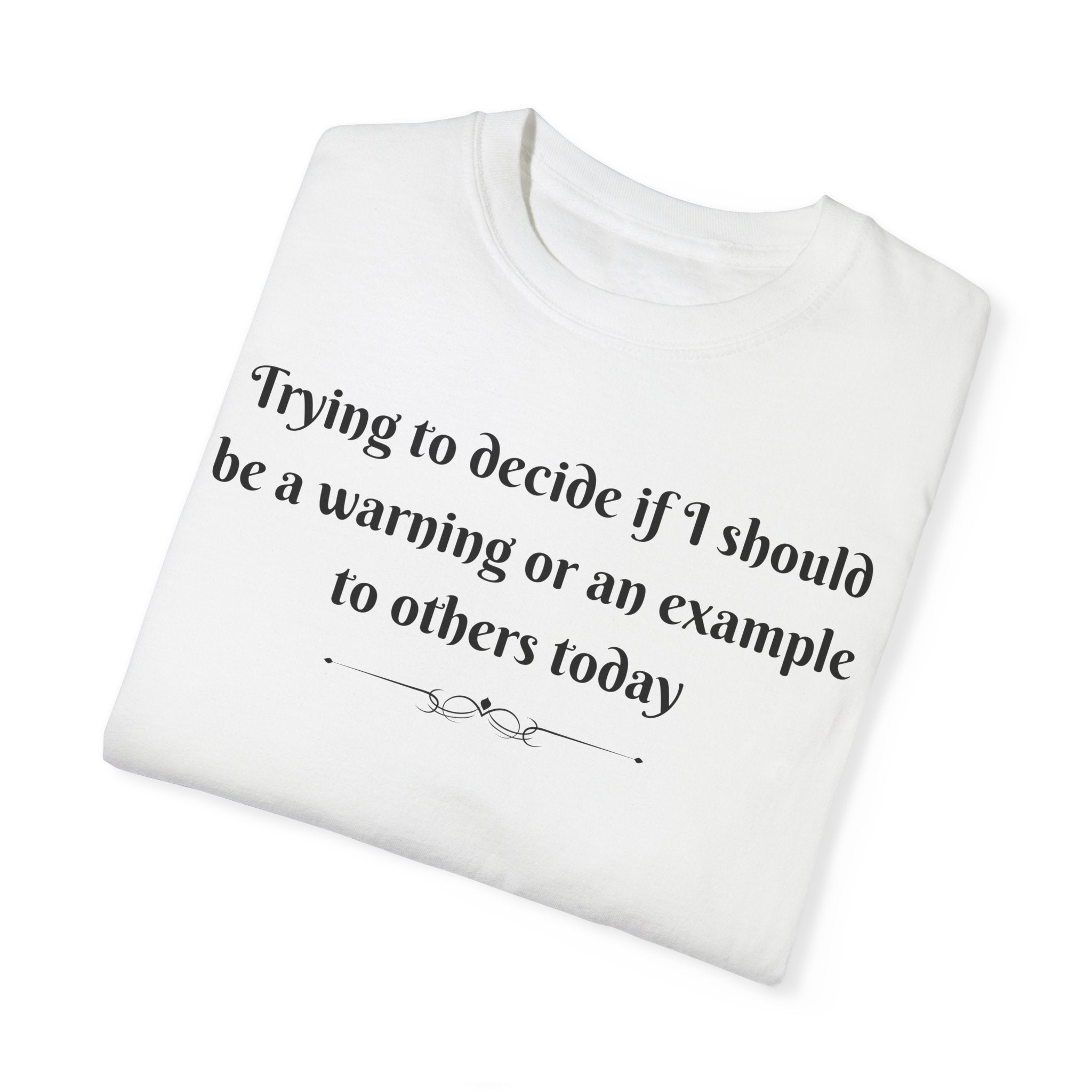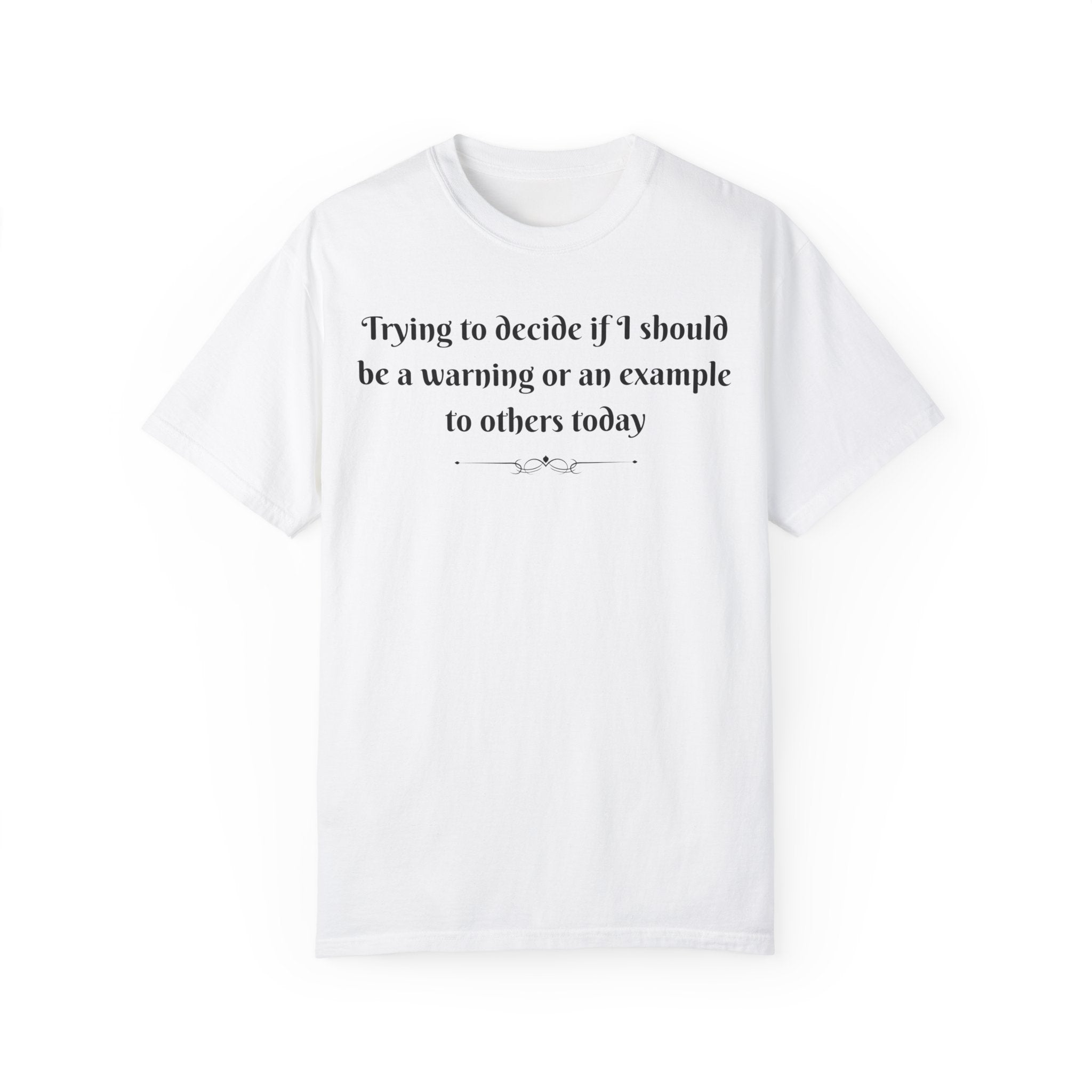 Embrace your daily conundrum with a side of sass wearing our "Decisions, Decisions Tee." Every wardrobe needs a little wit, and this shirt serves it up with a snicker and a smirk. Are you the cautionary tale or the inspiration of the day? Why choose when you can be the conversation starter wherever you go? Crafted for comfort and a dash of mystery, this t-shirt doesn't just speak to your mood; it speaks for it. It's not just a garment; it's a mood, a statement, a chuckle-worthy question we all ask ourselves. Perfect for those days when making decisions should be left on the backburner, and fun should take the front seat. Dive into the joy of indecision and watch as this tee becomes a closet classic!