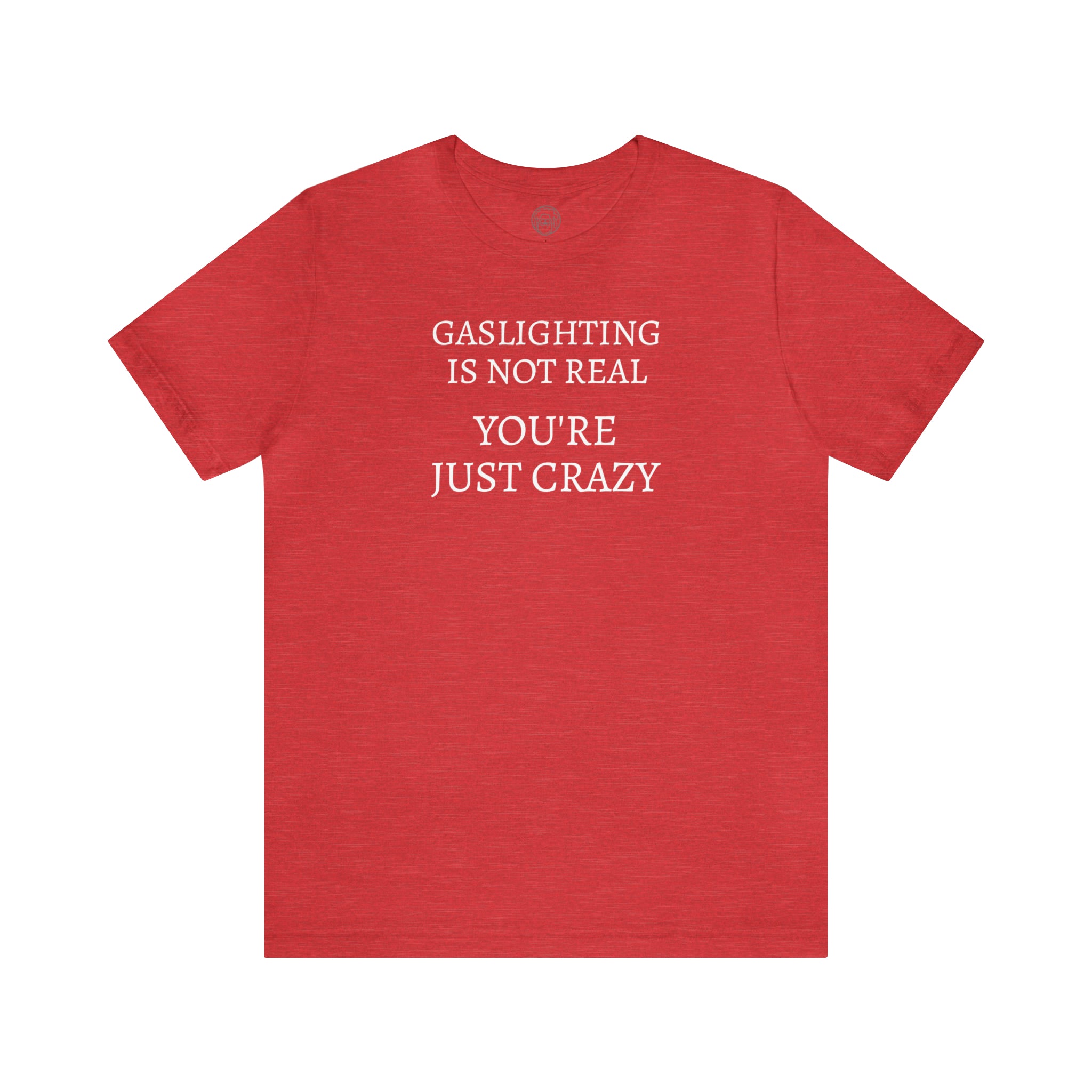 Make a statement with attitude and style, donning this Gaslighting Is Not Real short sleeve tee! Not just any fabric, this shirt comes complete with a sassy punchline. Perfect for the bold-hearted who live for a good tongue-in-cheek joke. Don our tees for a minimum of effort, or to take the special people down a notch. Either way, you're sure to get a sarcastic laugh. Slip into this shirt and let the world know that laughing, even at ourselves, is the way to go!