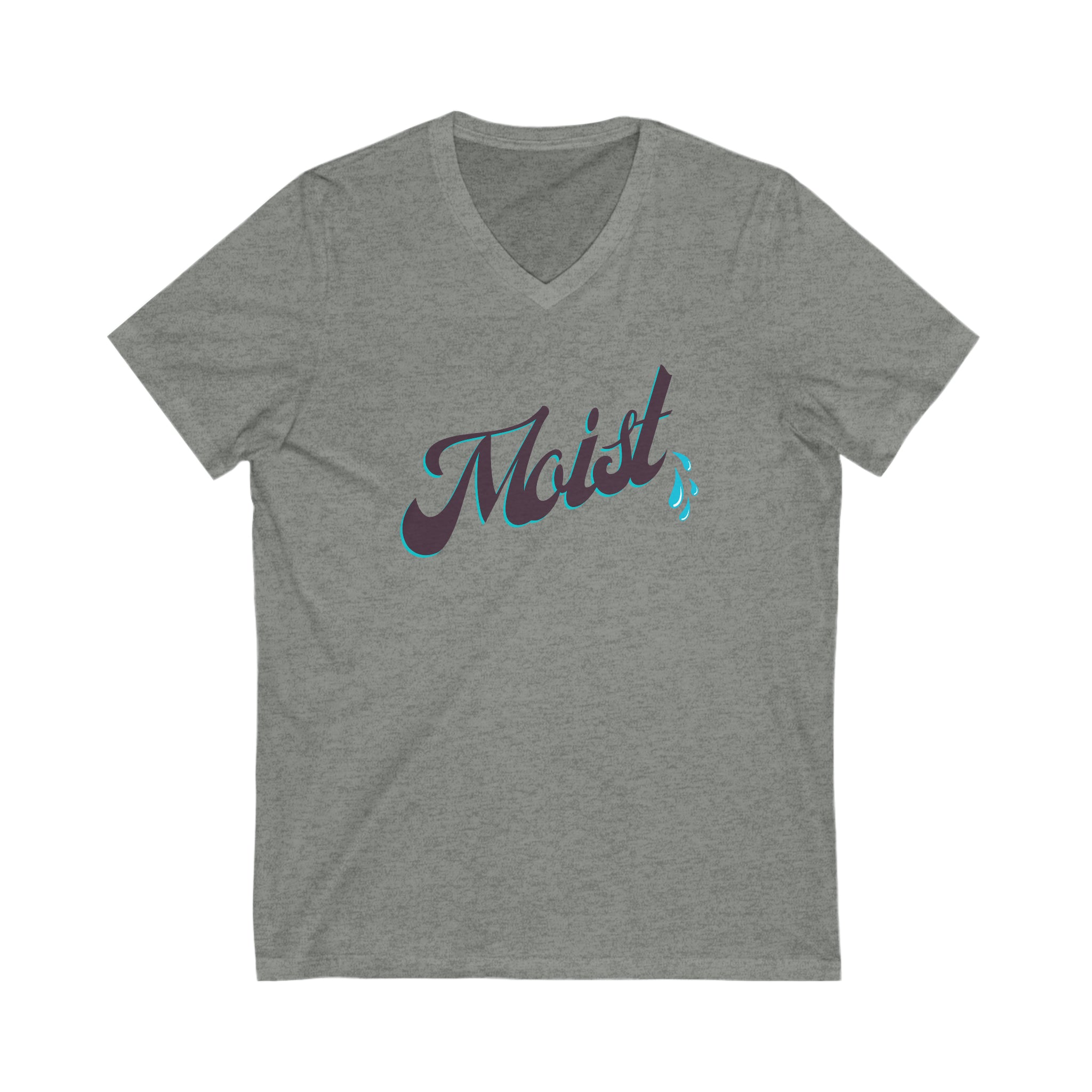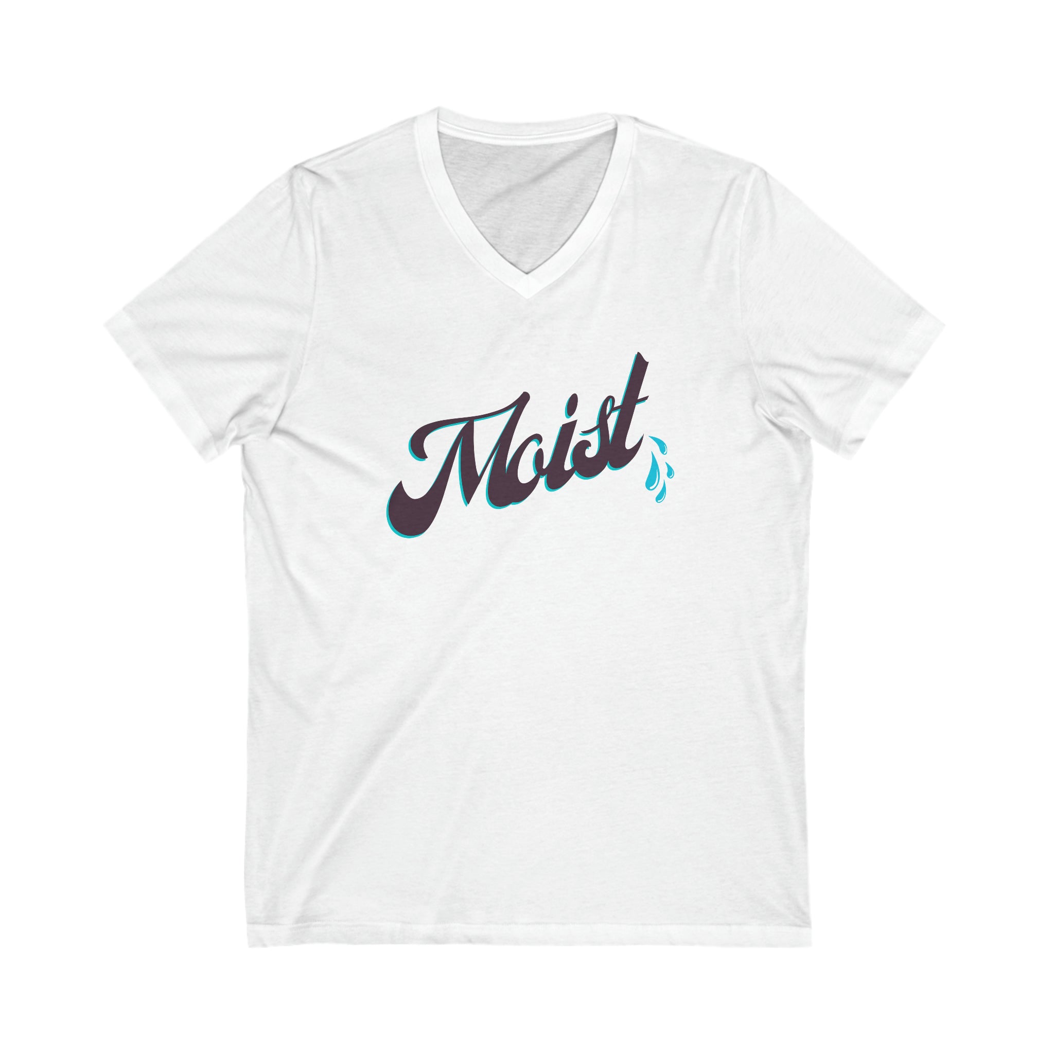 Dive into the fun with our "Hydration Sensation" V-Neck Tee! This shirt is for those who love to make waves with their humor and aren't afraid to sport a word that drips with comic potential. The simple yet bold "Moist" lettering, accompanied by a whimsical droplet design, is sure to garner grins and spark conversations. It's a crisp, fresh addition to any casual ensemble, perfect for breaking the ice at parties or just keeping cool on those sweltering days 💦.