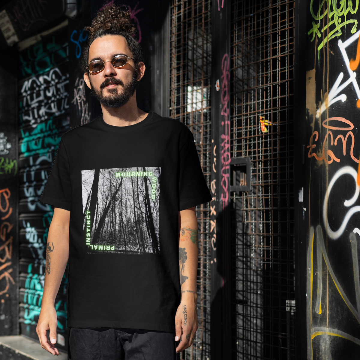 Turn heads and get ready to make a statement with the new band Mourning Wood and their album "Primal Instinct" Short Sleeve Tee!