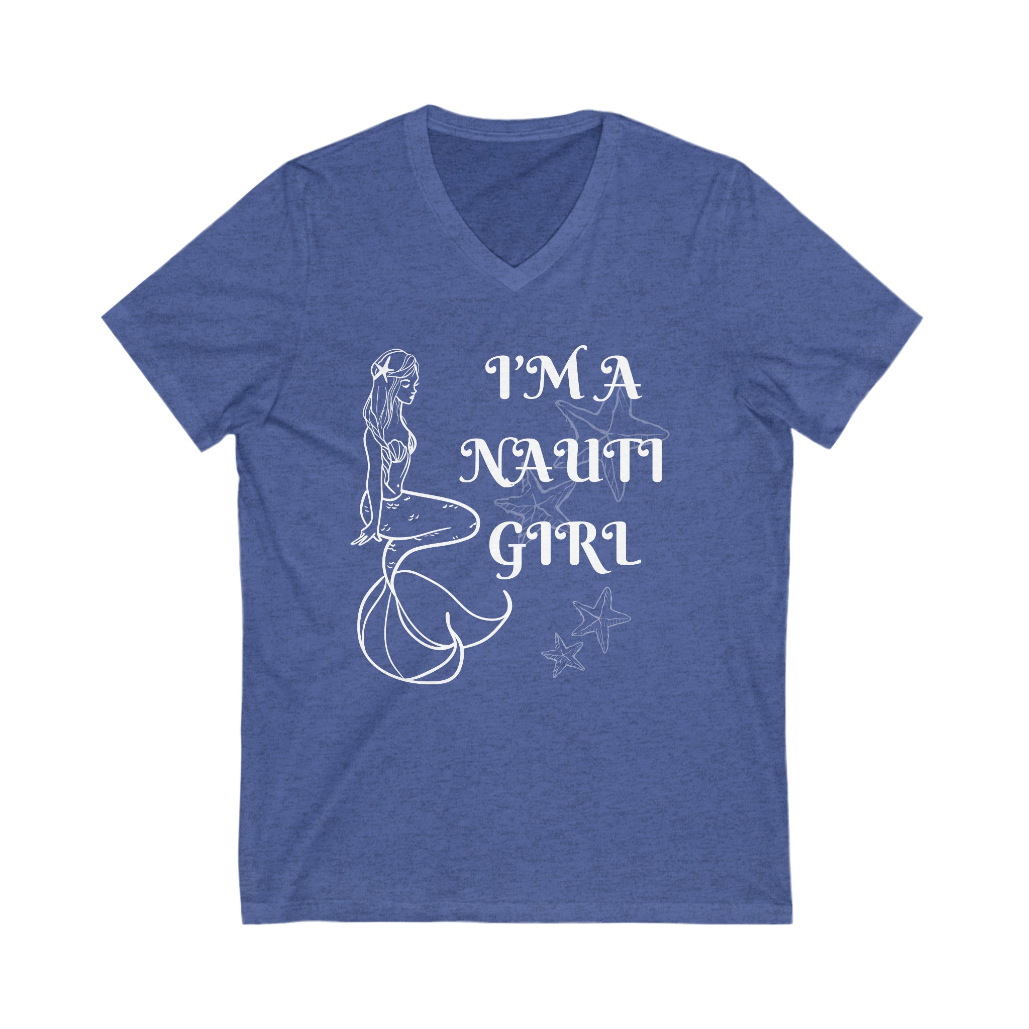 Set sail on a sea of style with the "Seaside Sass" V-Neck Tee. For the woman who's nautical by nature and naughty by choice, this tee is a playful nod to your free-spirited side. Adorned with a sassy mermaid graphic and the clever pun "I'm A Nauti Girl," it's the perfect blend of comfort and cheek. Whether you're basking on the deck or beachside, let your personality shine as bright as the ocean sun ☀️.
