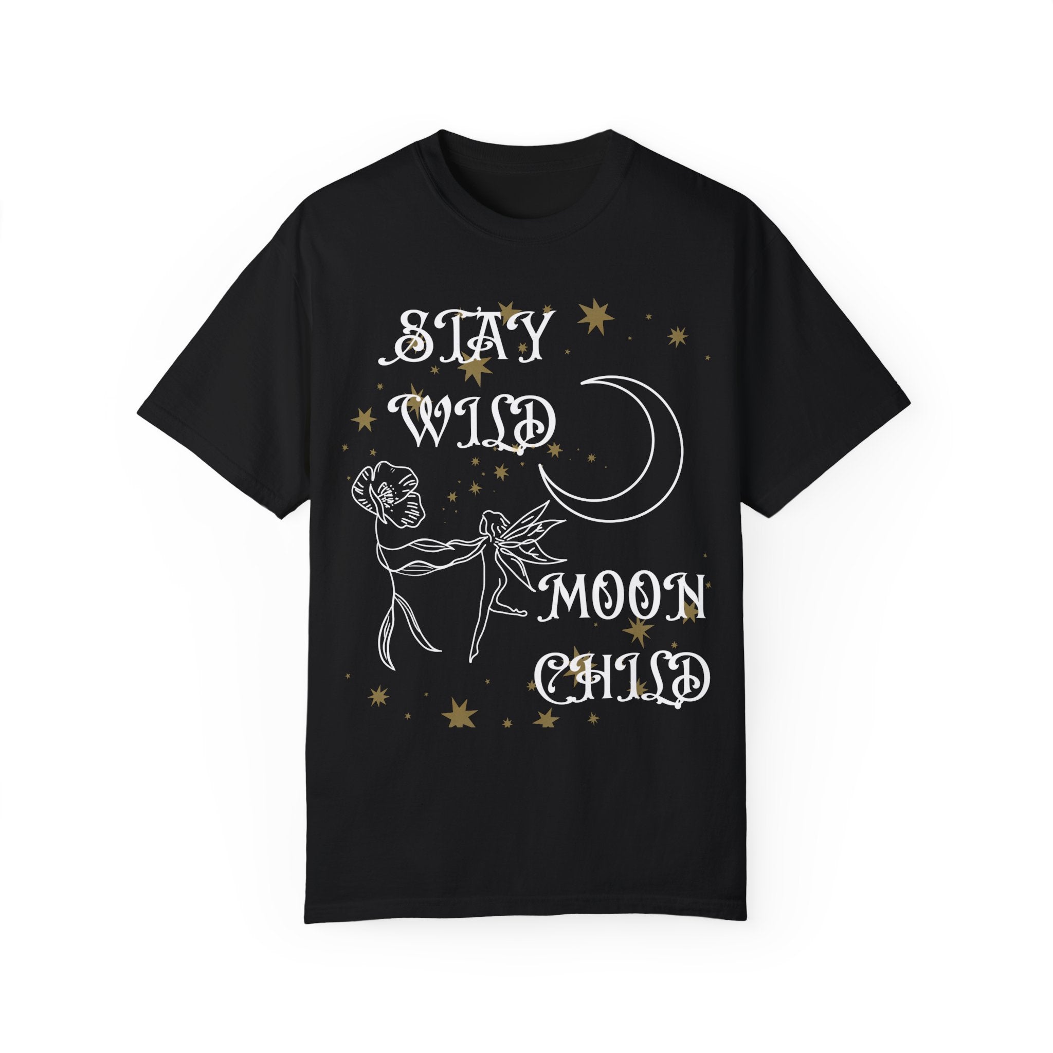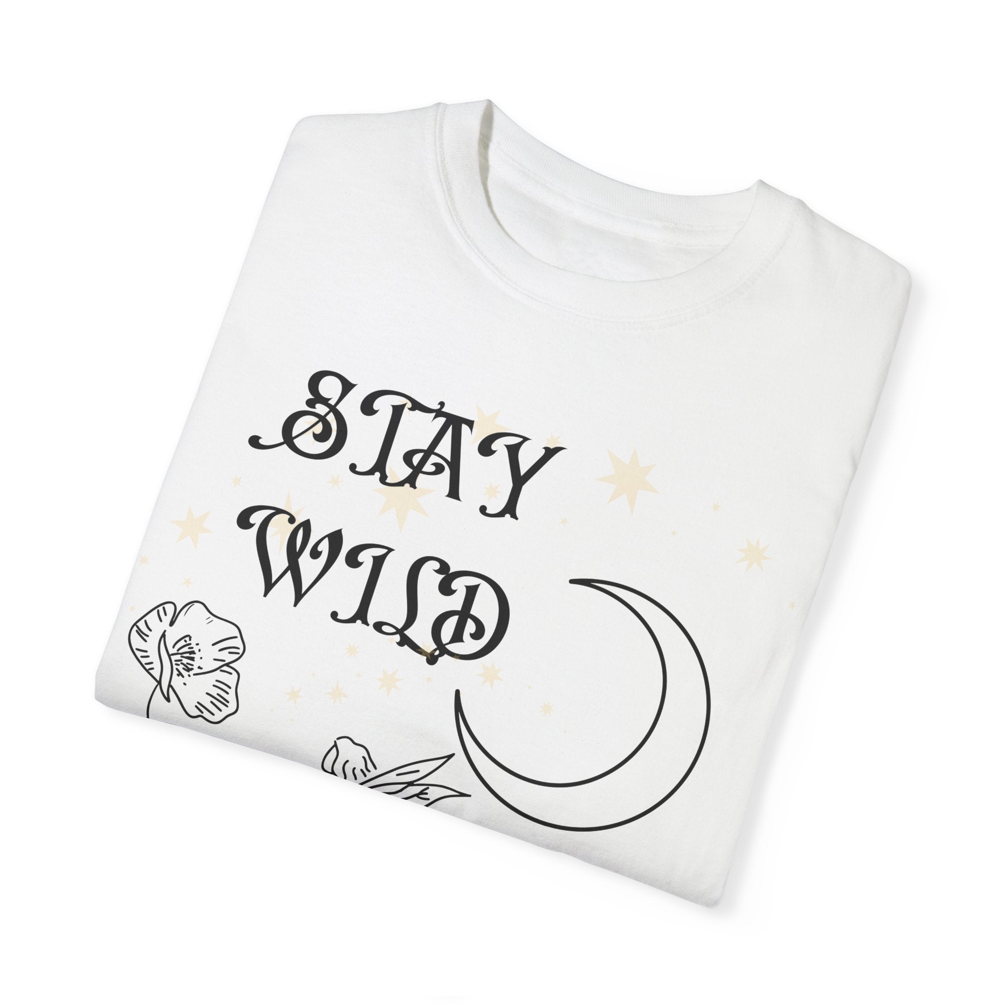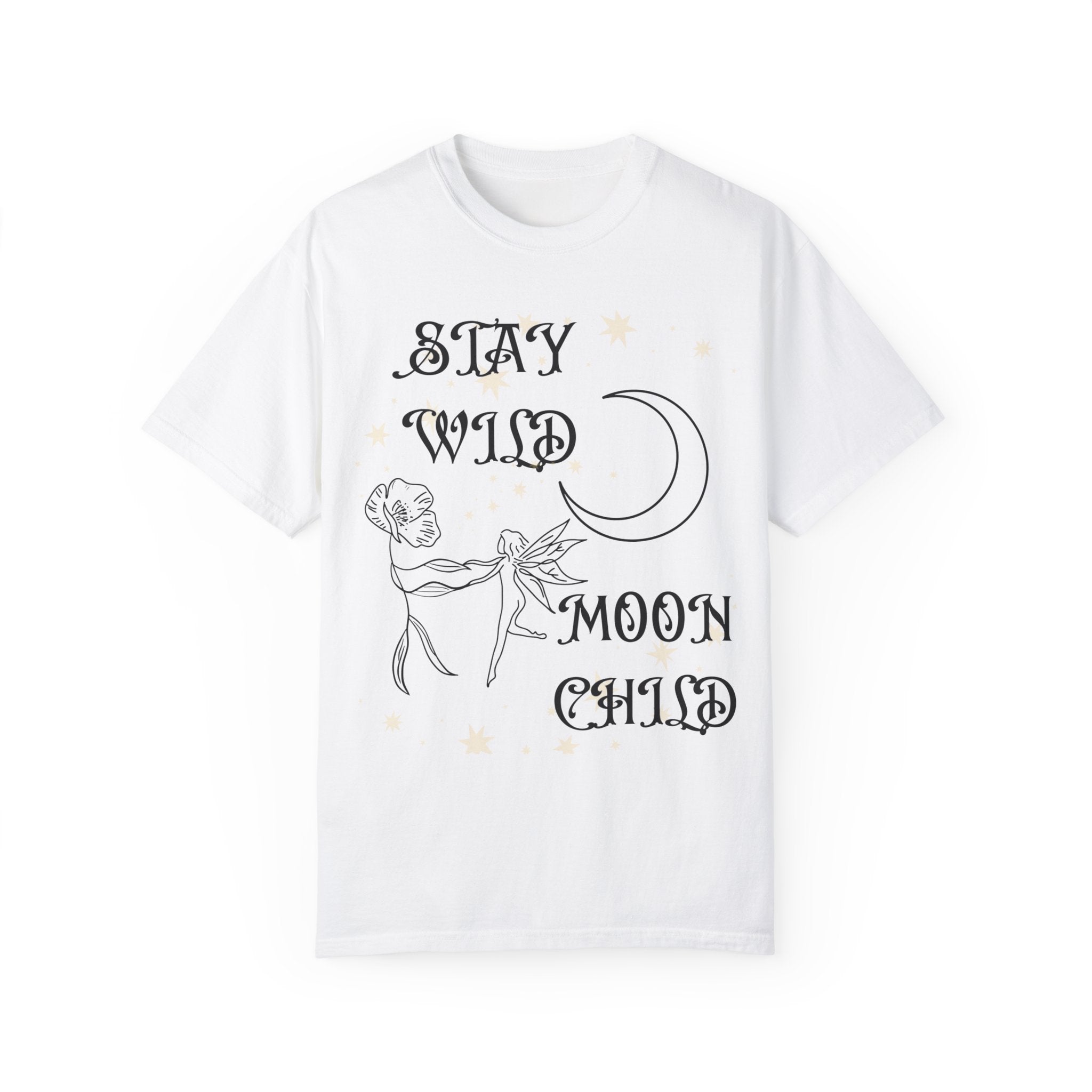 Unleash your inner cosmos and let your spirit dance with the stars in our "Stay Wild Moon Child" Tee! Crafted for the free spirits and the dreamers whose hearts beat in sync with the moon's phases, this tee is a tribute to the untamed joy of being unapologetically you. Draped in the celestial elegance of this shirt, it's more than just fashion — it's a lifestyle. A playful wink at astrology lovers and a nod to nocturnal souls, it whispers a mischievous challenge to the universe: "I'm here to sparkle, will you keep up?"